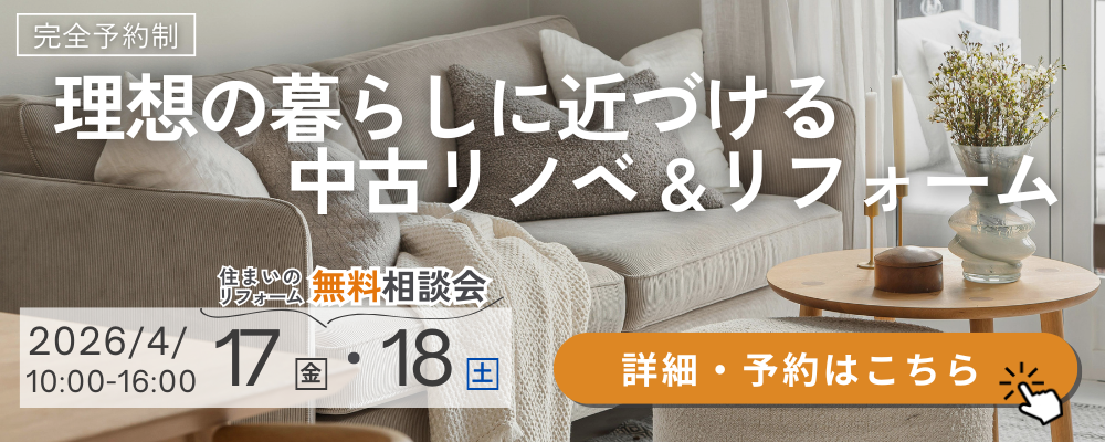 熊谷市|中古リノベ&リフォームをご検討中の方へ熊谷市では、中古住宅の購入をきっかけに、リノベーションやリフォームのご相談が増えています。 中古住宅を購入したけど、このまま住んでいいのか不安思っていたより古くて、どこから手をつけるべきか分からない入居前に直したほうがいい?住みながらでもできる?水まわりや内装を、自分たちの暮らしに合わせて変えたい 中古住宅のリフォーム・リノベーションは、「理想の暮らしに近づけられる」一方で、工事の進め方や優先順位によって、住みやすさや満足度が大きく変わります。 また、築20年以上の住宅では、設備の交換だけでなく、断熱や間取りの見直しが必要になるケースも多く、最初の計画がとても重要です。 そこでホームウェル熊谷では「中古住宅リノベーション&リフォーム無料相談会」を開催いたします。 現在のお住まいの状況やご希望をお聞きしながら、リフォーム費用の目安や補助金の活用方法などを、分かりやすくご説明いたします。 「まずは話だけ聞いてみたい」という方も、お気軽にご参加ください。 相談できるリフォーム内容無料相談会では、住まいに関する様々なリフォームについてご相談いただけます。 中古住宅リノベ&リフォーム二世帯住宅リフォーム間取り変更リフォーム断熱リフォームキッチンリフォームお風呂リフォームトイレリフォーム洗面リフォーム内装リフォーム窓・玄関リフォーム外壁・塗装など外装リフォーム補助金を使ったリフォーム 「中古住宅を購入したけど、どこまでやるか迷っている…」という方も、まとめてご相談いただけます。 完全予約制・個別対応で安心 無料相談会は 完全予約制・個別対応 で行っています。 待ち時間なし他の方を気にせず相談できる図面や写真を見ながら具体的に話せる 無理な営業等はありません。 「工事を決める前の情報収集の場」 として、お気軽にご利用ください。 開催日時2026年4月17日(金)、4月18日(土)10:00~16:00 ※ご予約の締め切りは 2026年4月11日(土)まで となります。 開催場所(お選びいただけます)1:ホームウェル熊谷(事務所) ・埼玉県熊谷市大原2-8-14 2:LIXIL 熊谷ショールーム ・埼玉県熊谷市肥塚4-115 落ち着いてじっくり相談したい方も、実際の商品を見ながら話したい方も、ご希望に合わせて会場をお選びいただけます。 ※熊谷市・深谷市・行田市・鴻巣市など、近隣エリアからも多くの方にご相談いただいています。 リフォーム無料相談会|予約方法 ご予約は、お電話またはWEBフォームから受け付けております。 お電話:050-7586-2716WEB予約:下記お問い合わせフォームより ご予約の際に、「中古住宅リノベ&リフォーム無料相談会に参加したい」 とお伝えください。 事前予約がおすすめ!うれしい特典付き 事前予約で、うれしい特典をご用意しています! 【ご予約特典】ご予約いただいた方には、ささやかなプレゼントをご用意しています。 【お見積り特典】ご予約のうえ、お見積りをご依頼いただいた方には、500円分のクオカードをプレゼント! ※ご相談のみのご参加も可能です。※ご予約枠には限りがありますので、お早めのご予約がおすすめです。 ご相談の際にあるとスムーズなもの(なくてもOK)本格的にお話を進めたい方や、ある程度内容が決まっている方は、以下をお持ちいただくとスムーズです。 お住まいの図面気になる箇所の写真検討中の商品資料など もちろん、手ぶらでもご参加いただけます! よくある質問Q. 相談したら必ず工事しなければいけませんか?→ いいえ、そのようなことはありません。相談のみの参加の方も多くいらっしゃいます。 Q. どのタイミングで相談するのがいいの?→ 入居前・入居後どちらでも可能ですが、早めのご相談がおすすめです。 Q. まだ何も決めていません→ 問題ありません。内容を整理する場としてご利用ください。 Q. 費用はかかりますか?→ 相談・見積り・現地確認すべて無料です。 まずは「相談」からはじめてみませんか? 中古住宅のリノベ&リフォームは、「どこにどれだけ手をかけるか」で満足度が大きく変わります。 まずは今のお住まいの状態を整理し、無理のない進め方を一緒に考えてみませんか? ご相談・お見積り・現地調査はすべて無料です。熊谷市周辺でリフォームをご検討中の方は、ぜひお気軽に「LIXILリフォームショップ ホームウェル熊谷」までご相談ください。