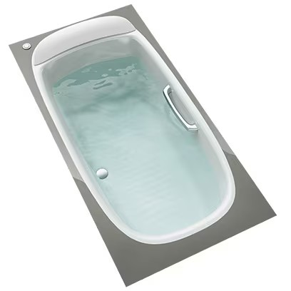 広い肩回りから、足元にかけてのびやかなラインが印象的な浴槽です。