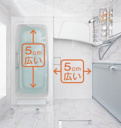 くつろぎの心地よさがさらに高まった、贅沢なワイド浴槽です。