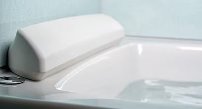 体のラインに寄り添う形状で、自然とリラックス姿勢がとれる浴槽です。