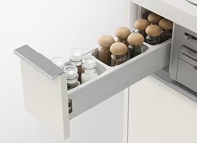 調理台下やコンロ下など、設置箇所に合わせて段数や奥行をカスタマイズが可能。