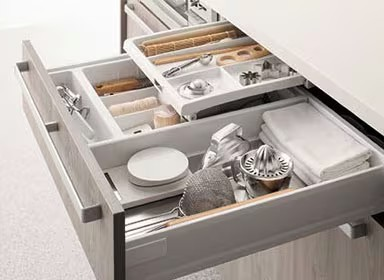 ムダになりがちな引出し上部のスペースが便利な収納に。