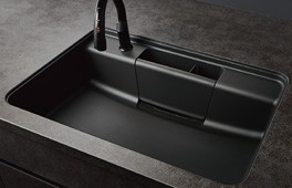 セラミックトップとの相性も抜群で、上質なキッチンにしたい方にぴったりのキッチンシンクです。