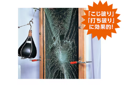 特殊な中間膜を2枚のガラスの間に挟んだ構造で、こじ破りや打ち破り対策にも効果的です。