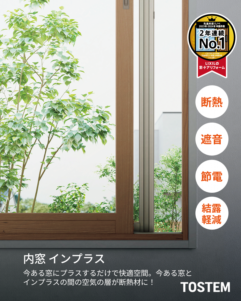 今ある窓はそのままに、内側にもう1枚窓を追加する方法。