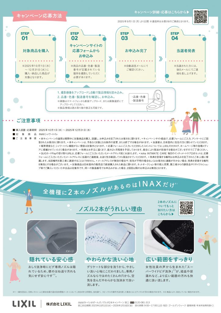 ▶ LIXIL | INAX トイレ ぜ〜んぶノズルが2本キャンペーン:リンク