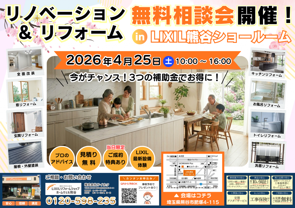 【熊谷市】最新キッチン実演&補助金無料チェック!リノベ&リフォーム相談会