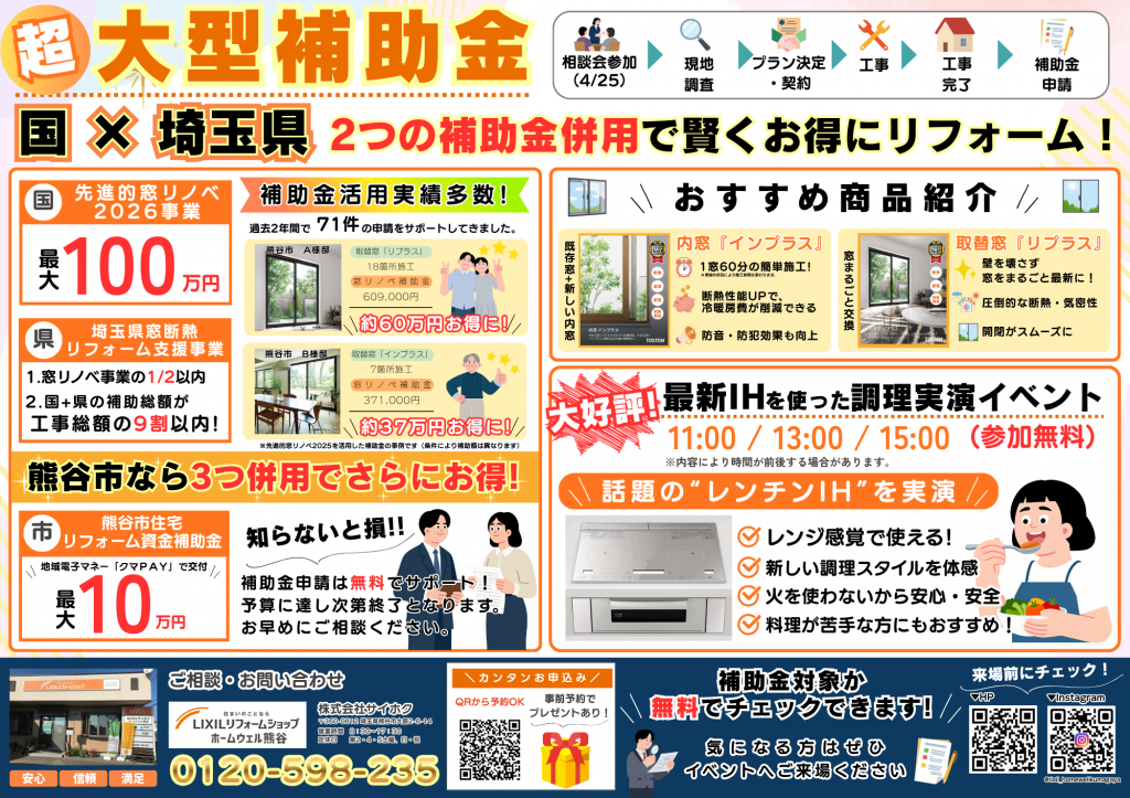 今なら、国・埼玉県・熊谷市 3つの補助金を併用して、お得にリフォームができるチャンスです!