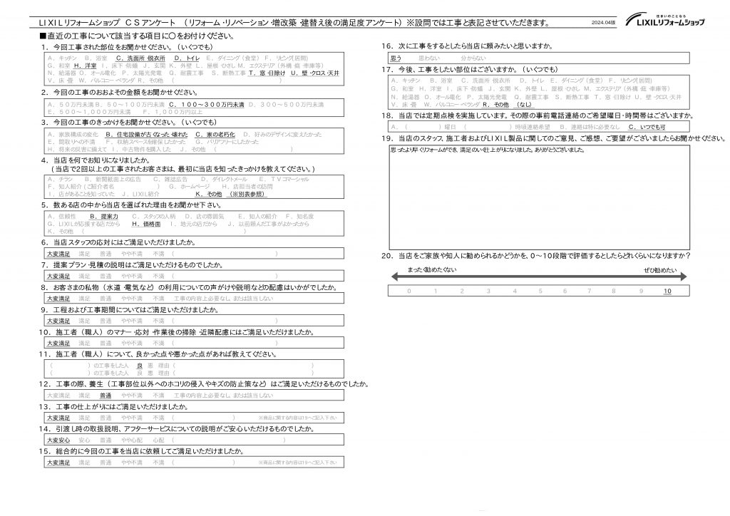 何店舗か見積りを取りましたが、全体的に一番よかったので決めさせていただきました。